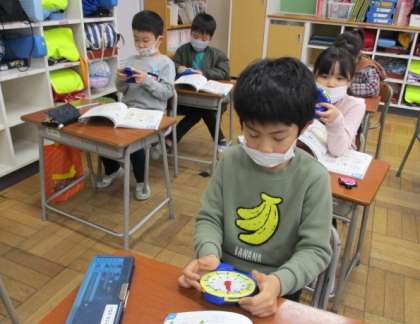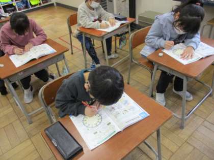 今日は時計を使って「何時何分」の問題に取り組みました。短い針や長い針が指す数字を丁寧に確認しながら、何時何分を表しているのか考えることができました。