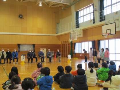 今日は最後の昔の遊び教室がありました。名人の皆さんに今までの成果と感謝の気持ちを伝えるために、技を披露したり、名人と一緒に遊んだりしました。