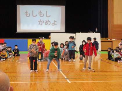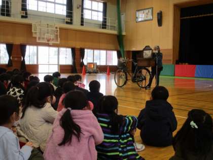 今回は昔の遊びの中で、紙芝居を自転車紙芝居スタイルで読んでくださりました。子供たちは夢中になってお話を聞いていました。