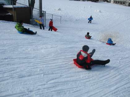 新庄小学校のスキー山でのそり遊びは大人気です!