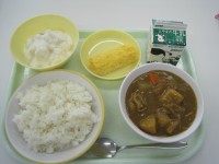 今日の献立は、肉団子のてり煮、コーンサラダ、白菜スープ、あげパン、チョコレートクレープ、牛乳です。