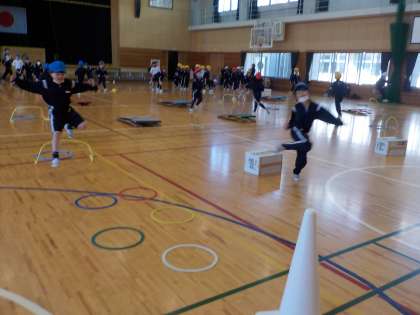 3月14日(火)2年生 体育科「低いハードルを跳んでみよう!」