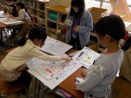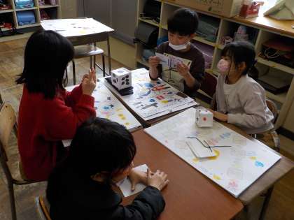 自分が生まれてから今までの出来事をすごろくやカルタ等で表しました。今日は友達の作ったもので遊びました。友達の新しい一面を知って嬉しそうな子供たちです。