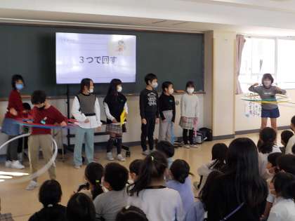 スポーツや昔の遊びの発表では、得意な子が代表で技を披露しました。