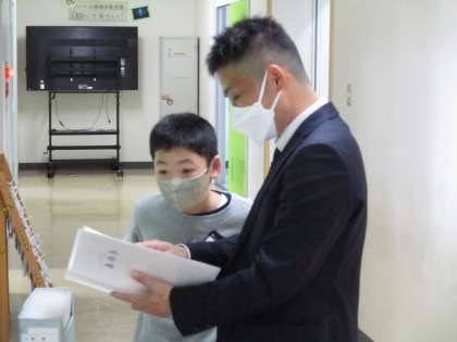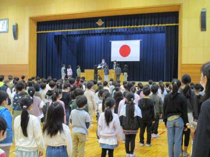 1年生から5年生が体育館に集まり修了式が行われました。式では、校長先生から各クラスの代表へ修了証書が手渡されました。教室に戻った児童たちは、担任の先生からあゆみを受取り、3学期に学んだことを振り返るとともに新しい学年への期待に胸を弾ませていました。