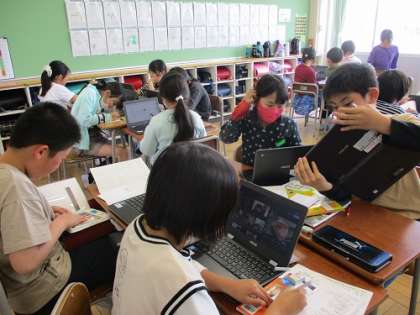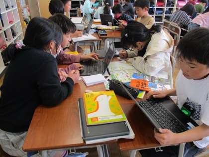 都道府県の特産品を調べて発表したり、オリジナルカルタをつくったりしています。