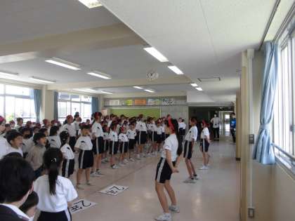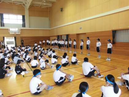 3時間目に結団式と応援練習がありました。6年生はこの日に向けて、団の合言葉を決めたり、どのような応援にするか内容を考えたりしてきました。下級生に優しく応援を教える姿は最高学年として、とても立派でした。これからの運動会練習にとても期待がもてます。
