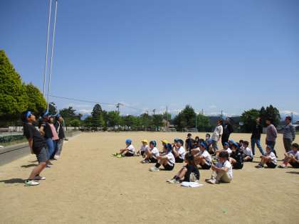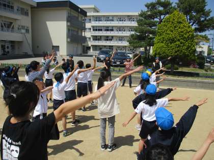 運動会に向けて、応援練習に熱が入っています。青団は、給食の時間に放送で呼びかけ、休み時間を使って応援の練習をしました。本番に向けて、できることから実践していこうという姿に関心しました。