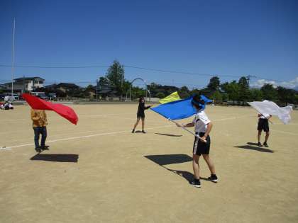 休み時間を使い、各団が運動会の練習に励んでいます。1〜5年生に呼びかけて応援の練習をしたり、旗手として旗の振り方を練習したりするなど、団のために活動しています。また、6年生の団体競技のリレーに向けてバトンパスの練習も始まりました。来週の運動会に向けて様々な活動に取り組んでいます。