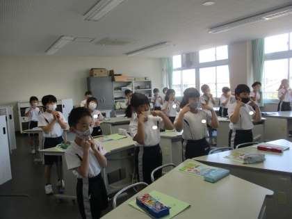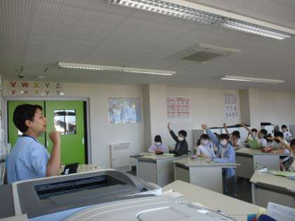 3年生の子供たちは、ALTと学習する外国語活動が大好きです。楽しみながら英語の発音の練習をしました。
