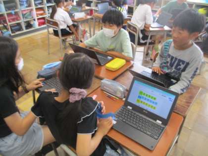 先週の金曜日に行ってきた「四季防災館」と「イタイイタイ病資料館」で学んだことを、それぞれ班ごとにパソコン上に記録し、互いに共有しました。自分では気が付かなかったことに気付いたり、新たな疑問がうまれたりして、今後の追究活動のきっかけになったようでした。