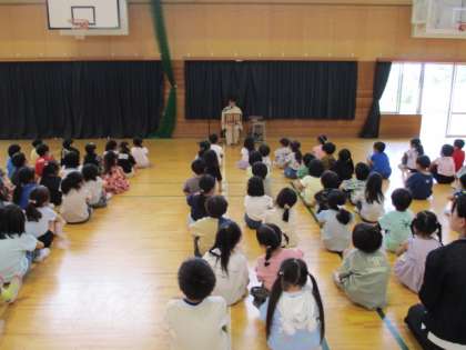 鈴木先生に来ていただいてのお話会がありました。1・2年生の教科書にあるお話や、絵本を朗読していただき、子供たちはお話の世界に浸っていました。最後に読んでいただいた、ティラノサウルスとプテラノドンが敵対関係ながら心がつながるお話では、特に心が温かくなった!と子供たちは話していました。プテラノドンが力を振り絞って飛び立つシーンでは、一緒になって両腕を広げた子供たちがいて、とても微笑ましかったです。
