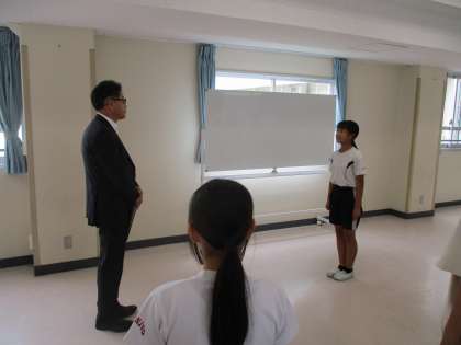 5・6年生の代表者が集まり、6月10日(土)に開かれる富山市小学生陸上競技交流大会に向けて出発式をしました。今までの練習の成果を出し切り、1人1人が目当てを達成できるように頑張ります。