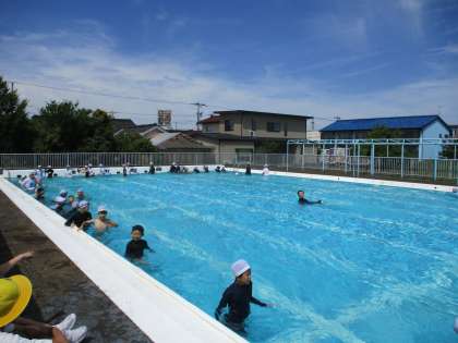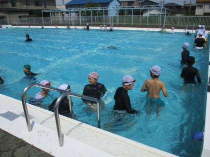 プール清掃をがんばってくれた6年生は、自分たちがきれいにしたプールの中で楽しく活動していました。天気も良く、気持ちの良いプール学習となりました。