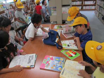 子供たちは、棚に並ぶたくさんの本を見て、目を輝かせていました。自分で借りたり返したりする方法を教えていただいたので、今後読書の楽しみがさらに増えそうです。