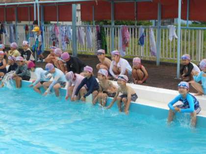 今日は2年生になって初めての水泳学習でした。子供たちはプールの約束である「か・ぶ・と・む・し」に気をつけながら、楽しんで水泳学習に取り組むことができました。