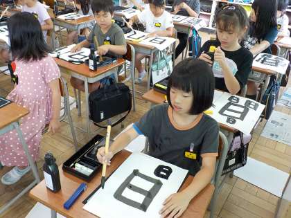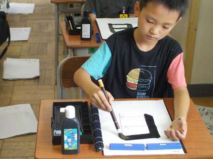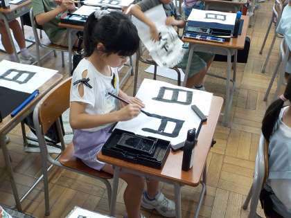 少しずつ筆の扱いに慣れてきました。1文字に心を込めて書いており、顔つきや背筋の伸びに凜々しさを感じます。