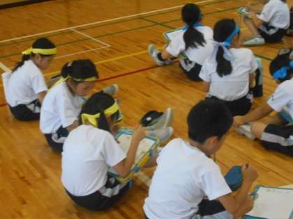 チームごとに作戦を練って、制限時間内により多くの宝(玉)を取る方法を考えていました。