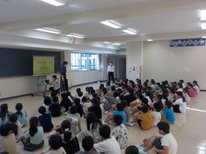 今日の学年集会では、2学期に行われる行事や学習について確認しました。子供たちの発言からは「おもしろそう」「はやくやりたい」など、すごく楽しみにしている様子がうかがえました。
