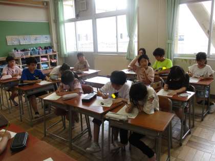 2学期がスタートしました。はじける笑顔で登校してきた3年生。始業式の後、学年集会で目当てを確認したり、各学級で夏休みの思い出ビンゴを楽しんだりしました。