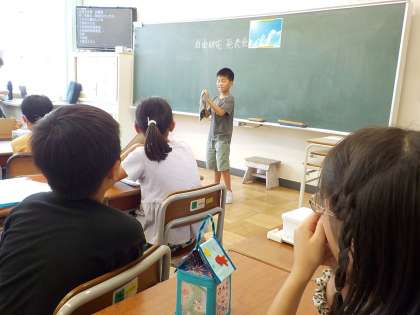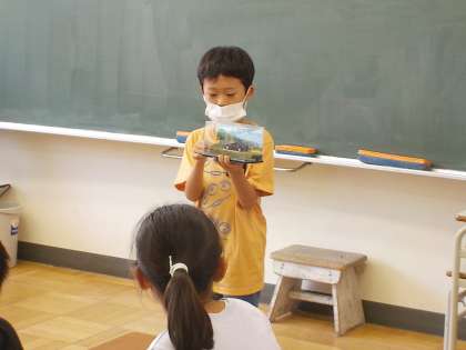 夏休みの自由研究について発表会をしました。作品に込めた気持ちや思い出も伝わってきました。