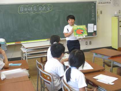 夏休みの自由研究の発表会をしました。それぞれの作品の工夫や頑張りが伝わってきました。