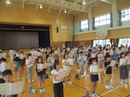8月31日(木) 5年生 合唱 体育館での初合わせ練習