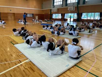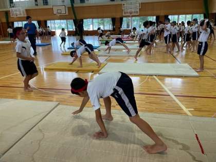 ゆりかご、前転後転、側方倒立回転等、様々な技にチャレンジしています。