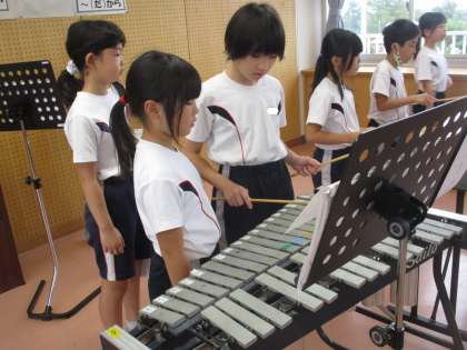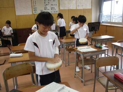 音楽科では、自分で考えたリズムを自分の選んだ楽器で演奏しました。