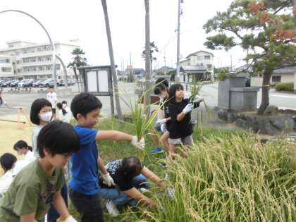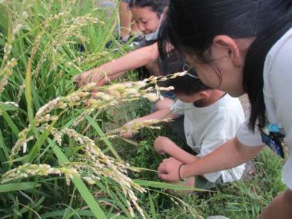 稲刈りをしました。稲を刈る感触や、収穫の充実感を感じていました。