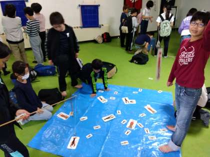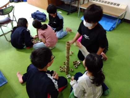 2日目最初の活動は、予定を変更しバンブーチャレンジを行いました。