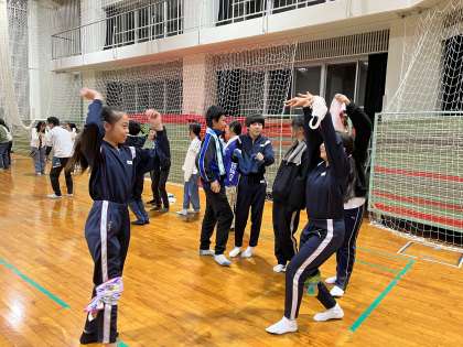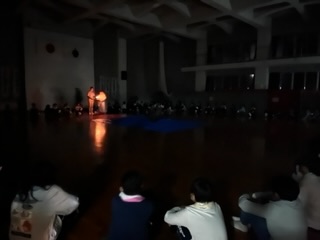 美味しい夕ご飯をお腹いっぱい食べた後、雨天のため、キャンプファイヤーから予定を変更してキャンドルサービスを行いました。火の女神からいただいた各自のろうそくの火を見つめながら、今日一日の楽しかったことを思い出し、その後、活動係主催のゲ-ムを思い切り楽しみました。午後7時を過ぎていましたが、疲れを見せず、みんな元気いっぱいでした。