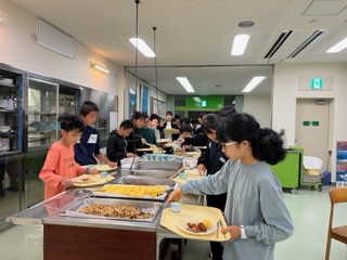 朝の集い、朝ごはん、清掃を終え、いよいよ野外炊飯、カレーづくりです。天気もよくなってきました。美味しいカレーができるでしょうか。