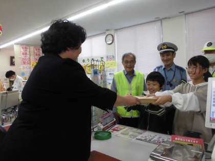今日は新庄郵便局で代表が投函式に参加しました。安全に気をつけてほしいという思いを伝え、新庄郵便局長に手紙を渡しました。