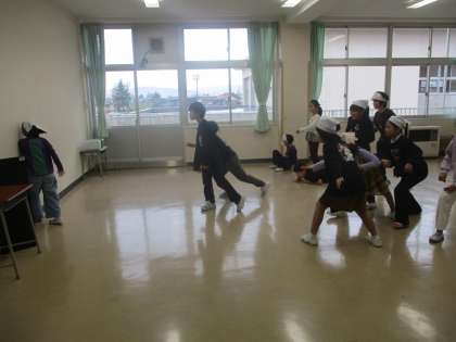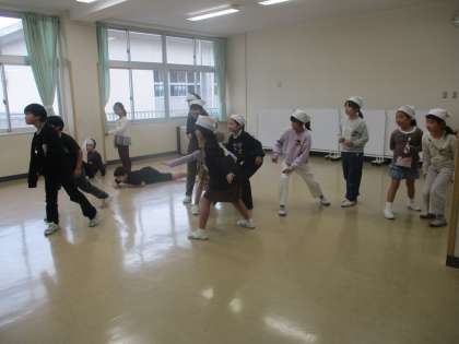 雨の日も元気いっぱいの3年生。「だるまさんがころんだ」を楽しみました。