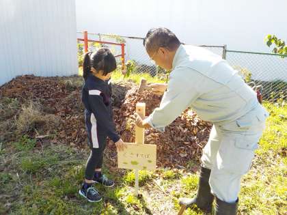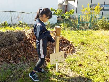 風の強い日が続きました。1年生のアサガオの鉢が倒れ、砂まみれの中庭を掃除する子供たちの姿が見られました。落ち葉や枯れ葉が増える中、学校の草捨て場の看板を作り、用務員さんと一緒に立てる子供もいました。季節に合わせて人の役に立つことは変わってくるようです。