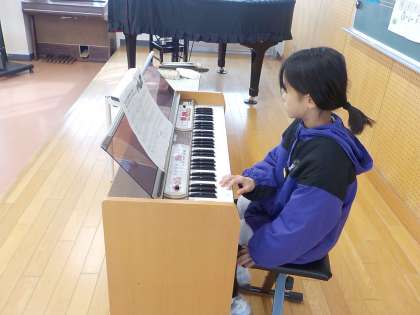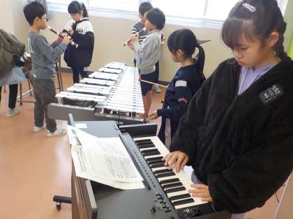 合奏の練習の様子です。パート練習をしてからグループ練習をしました。「休み時間も練習していいですか」と熱中する子供もいます。みんなと音を合わせるのは心地よいですね。