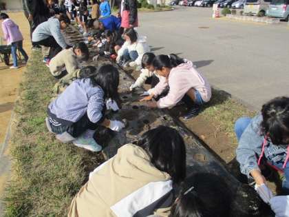 11月14日(火)4年生 チューリップの球根植え