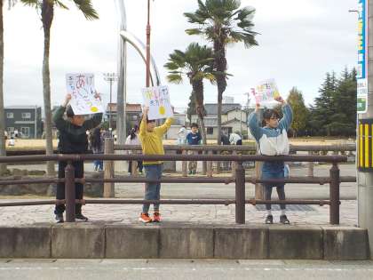 「挨拶がいっぱいの元気な新庄校区にしたい」「ゴミのないきれいなまちにしたい」という思いをもち、一人一人が校区を盛り上げようと工夫しながら取り組んでいます。