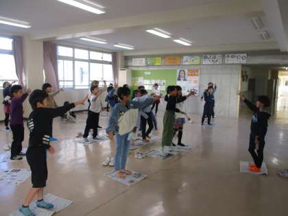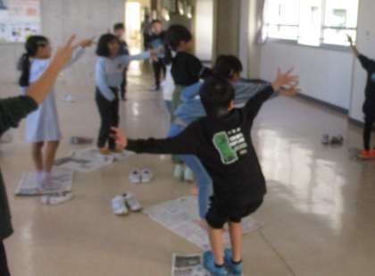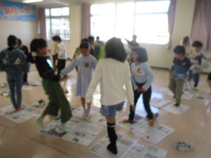 集会係が主催した「新聞ジャンケンゲーム」をしました。新聞紙一枚でみんな大盛り上がりで、笑顔があふれる時間になりました。