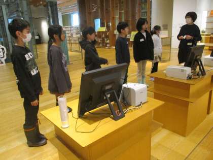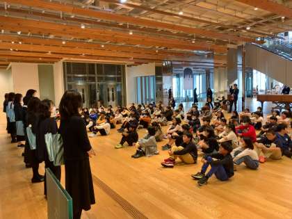 富山市ガラス美術館・富山市立図書館招待プログラムを利用して見学に行きました。子供たちは、様々なガラス作品の美しさにうっとりしたり、大きな作品にびっくりしたりしながら楽しんで見学していました。図書館の本の借り方も教えてもらい、「今度借りに来よう!」と意気込んでいました。