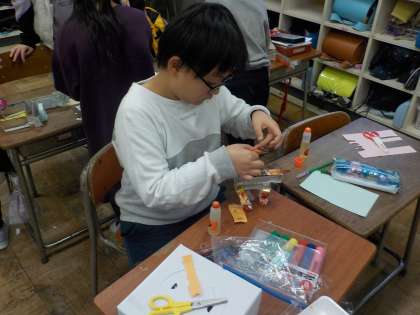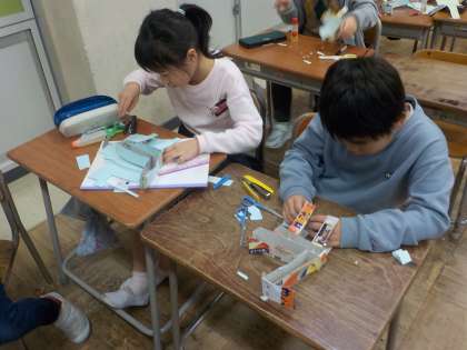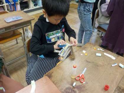 子供たちは今、国語科で「馬のおもちゃ」を作っています。文章を何度も読みながら一つ一つ丁寧に作っている姿が見られました。始めの頃は、「なかなかきれいに立たないな」と困っている様子も見られました。しかし、自分なりに様々な工夫をこなし、世界で一つの馬のおもちゃが完成しました。