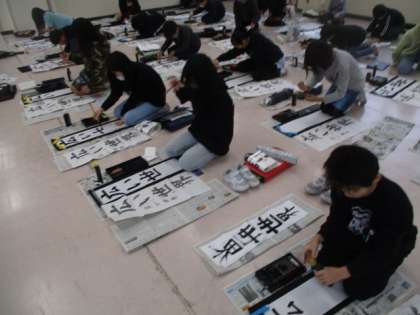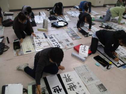 あっという間に今年も1年の最後の月となりました。3学期始業式に行う書き初め大会に向けての練習が始まりました。5年生は今年「広い世界」を練習します。本番は体育館で行うこともあり、今日は実際に床で書く練習をしました。練習したものは各教室前に掲示予定ですので、来週の懇談会にお越しの際ぜひご覧下さい。
