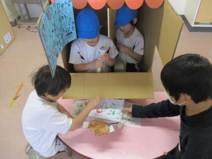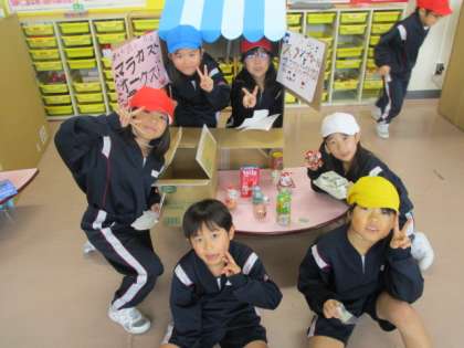 1組と2組は今日秋のおもちゃでお店屋さんをしました。休み時間には、6年生に来てもらい一緒に遊びました。準備から張り切って頑張っていました。