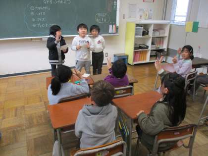 クリスマス会を行いました。「みんなの仲を深めよう」というテーマで出し物を企画し、イラストや折り紙の景品を用意するなど、子供たちは張り切って準備を行いました。宝探しやクリスマスクイズ、射的、プレゼント交換を楽しみました。