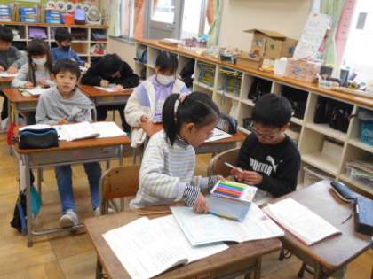 国語科では、「詩の楽しみ方を見つけよう」で、3つの詩の中から気に入った詩を音読、視写してイメージをイラストで描きました。また、算数科では「2学期の復習」で、かけ算九九のおさらいをカードを使ってゲーム感覚で「すらすら九九」として競い合いました。冬休み明けでもしっかり覚えていた子供たちに安心しました。ゆっくりめですが、3学期の学習がスタートしました。