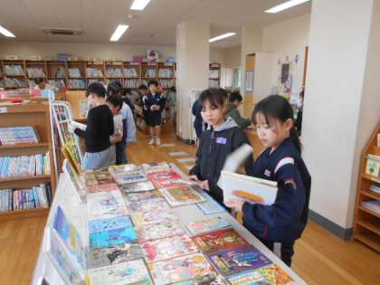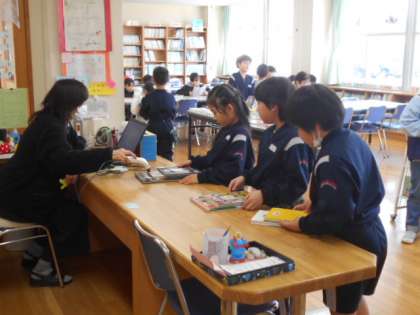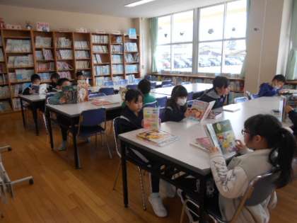 2年生は、週に1回程度図書室を訪問し、図書を借りています。2年生も終わりに近づき図書室の利用がとても上手になってきました。もちろん、読書による「心の栄養」の補給も十分です。