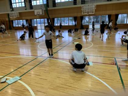 体育の時間に、縄跳びや鉄棒等、自分の技を高める運動に取り組んでいます。基本の技から少しレベルが上の技にも挑戦しながら、記録を伸ばしています。