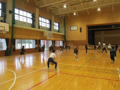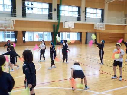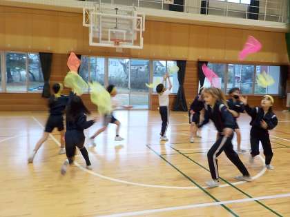 富山市スポーツ協会から講師の方をお招きし、コオーディネーショントレーニングを行いました。スカーフやボールを使った、さまざまな体つくり運動の方法を教えていただきました。