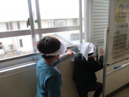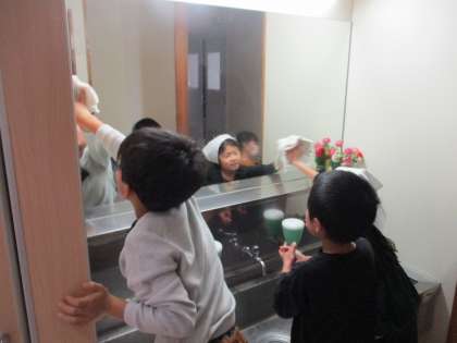 「きれいになったずこうしつ」の学習で、みんなのためにきれいにしたい場所を一人一人が考え、掃除しに行きました。自分で選んだ場所を掃除して教室に戻ってくると、「楽しかった」「またやりたい」と嬉しそうな表情でした。